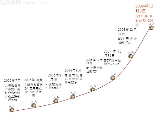 上海電信IPTV用戶12月3日突破百萬大關(guān),比原本預(yù)計的發(fā)展時間提前了近一個月。從2006年10月正式商用,發(fā)展到2009年12月,上海已經(jīng)成為全球最大的IPTV本地網(wǎng)并且是唯一用戶規(guī)模過百萬的城市。