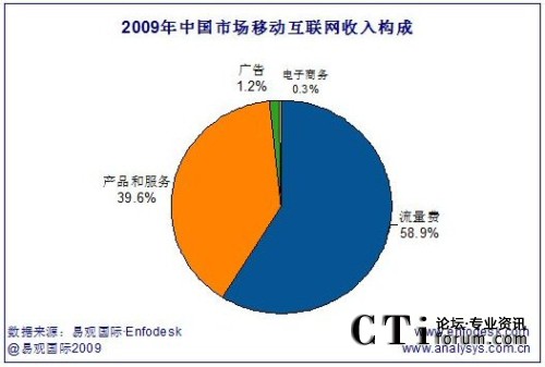 移動(dòng)互聯(lián)網(wǎng)收入規(guī)模中,流量費(fèi)收入達(dá)228億元人民幣,占總體市場(chǎng)收入的58.9%,因此可以看出,移動(dòng)互聯(lián)網(wǎng)的快速發(fā)展將直接為運(yùn)營(yíng)商帶來(lái)通道收入的增長(zhǎng)。除流量費(fèi)外,產(chǎn)品及服務(wù)收入對(duì)移動(dòng)互聯(lián)網(wǎng)收入規(guī)模貢獻(xiàn)最大,收入規(guī)模將達(dá)153億人民幣,占比39.6%,而相比產(chǎn)品和服務(wù),廣告及電子商務(wù)的目前收入規(guī)模仍然較小,盈利模式尚需深入挖掘。