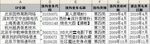 07年5月,中國移動通信集團上海有限公司司已公告各合作伙伴,將于07年6月實施《SP違約考核黑名單制度》,并于每月公布上月考核結(jié)果,F(xiàn)公布截至2010年3月8日的違約考核黑名單。望各合作伙伴規(guī)范業(yè)務(wù)運營,營造有利發(fā)展環(huán)境,樹立誠信服務(wù)的行業(yè)形象。
