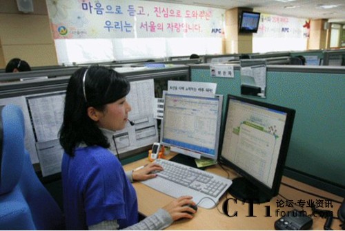 CTI論壇(ctiforum)7月27日消息(編譯/鄧旭):在位于韓國(guó)首爾市中心Dongdaemun的120茶山首爾熱線呼叫中心大樓一樓,10名座席員正忙著向外國(guó)人提供在韓遇到的各種問(wèn)題的建議,問(wèn)題涉及到從指路到拖欠工資等各個(gè)方面。他們以五種語(yǔ)言提供這種咨詢服務(wù),即,英語(yǔ),漢語(yǔ)、日語(yǔ)、越南語(yǔ)和蒙古語(yǔ)。