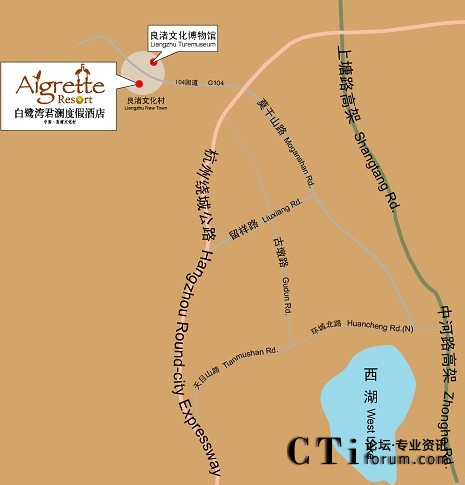 西湖——環(huán)城西路——莫干山路(過勾莊收費站)——新104國道(大陸出口)——良渚文化村——杭州白鷺灣君瀾度假酒店