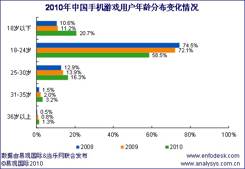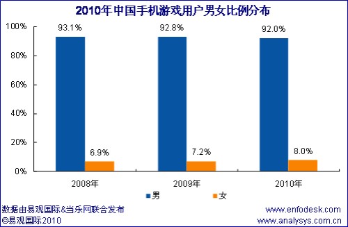 近期易觀國際、當(dāng)樂網(wǎng)聯(lián)合對(duì)手機(jī)游戲用戶進(jìn)行調(diào)研,推出《中國手機(jī)游戲用戶研究報(bào)告2010》,從中國手機(jī)游戲用戶結(jié)構(gòu)特征和用戶行為方面分析手機(jī)游戲產(chǎn)業(yè)發(fā)展三大空間: