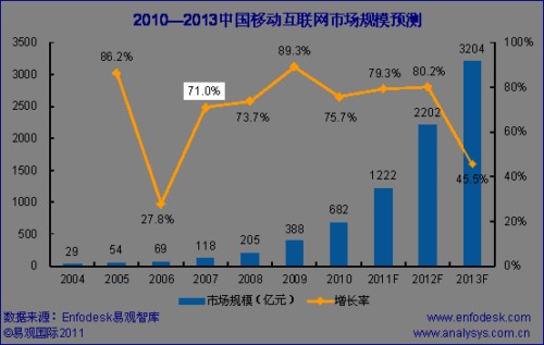 2013年中國移動互聯(lián)網(wǎng)市場規(guī)模將突破3000億