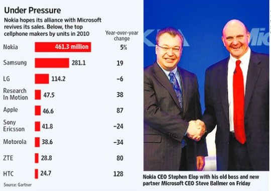 8250,N73,E71 ……曾幾何時,諾基亞幾乎就是手機(jī)的代名詞。直到2008年第二季度,其全球市場份額高達(dá)40%,但此后便開始下滑,2010年第四季度其市場份額跌至31%。