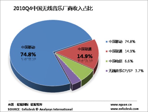 2010年第4季度中國無線音樂市場收入達77.8億元