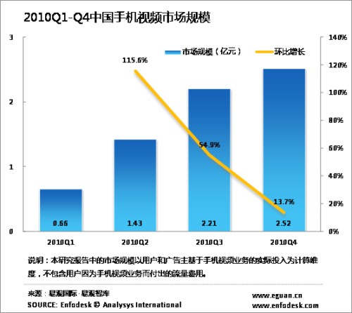 2010年中國(guó)手機(jī)視頻市場(chǎng)規(guī)模達(dá)6.81億元