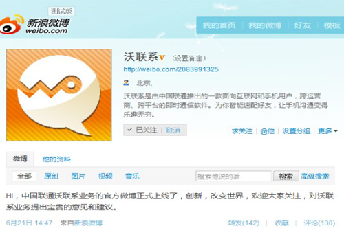 中國(guó)聯(lián)通微博透露將推即時(shí)通信軟件“沃聯(lián)系”