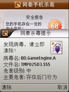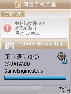 此外,在分析過程中專家還發(fā)現(xiàn),這款手機(jī)病毒聯(lián)網(wǎng)下載的“gameEngine.sis_7”惡意插件存在 “自我保護(hù)”機(jī)制,一旦被下載到手機(jī)中將影響其它第三方手機(jī)安全軟件的正常安裝。
