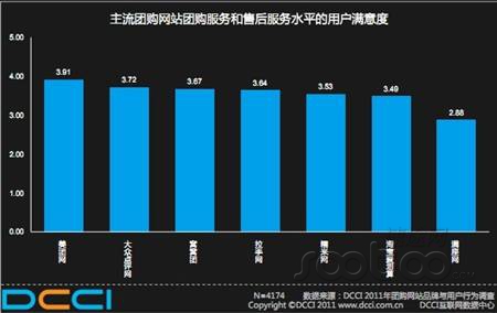 圖:DCCI主流團(tuán)購(gòu)網(wǎng)站服務(wù)和售后水平的用戶滿意度