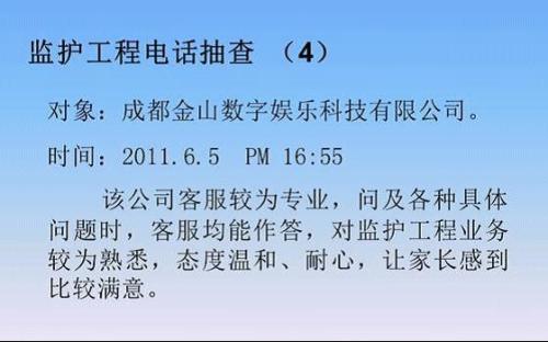 金山游戲客服經(jīng)過6年多的發(fā)展,客服的服務(wù)水準(zhǔn)和管理日趨完善。楊靜一表示,金山客服的服務(wù)理念是“金色心服務(wù)”,“金色”代表陽光、溫暖,“心”代表真誠、用心,金色“心”服務(wù)就是真誠用心地為玩家服務(wù),讓玩家在服務(wù)中感受到陽光與溫暖。
