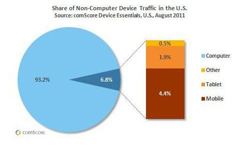 市場(chǎng)研究公司comScore發(fā)表報(bào)告稱(chēng),8月份,智能手機(jī)和平板電腦等“非計(jì)算機(jī)”設(shè)備在美國(guó)互聯(lián)網(wǎng)流量中的份額由6月底時(shí)的6.2%增長(zhǎng)至6.8%。