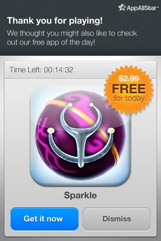 怎樣有效的將應(yīng)用貨幣化呢?簡單的說,我們首先需要判斷當(dāng)前用戶群的客戶終身價(jià)值,然后通過一系列方法使該價(jià)值得到持續(xù)的提升;這些方法包括“應(yīng)用內(nèi)”的普通廣告、產(chǎn)品體驗(yàn)廣告、來自相同發(fā)布商的其他應(yīng)用信息、相關(guān)增值產(chǎn)品與服務(wù)等。下圖所示的就是在應(yīng)用中推銷另一款產(chǎn)品的典型案例。