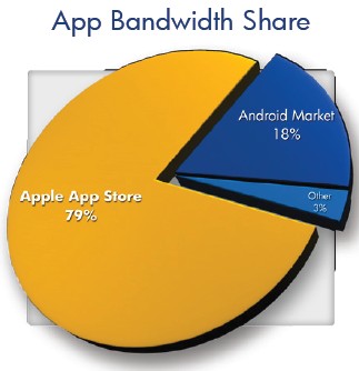 安卓市場(chǎng)的下載量依舊落后于app store,不過(guò)下半年它的增長(zhǎng)速度幾乎是app store的4倍,為232%,而后者為61%。