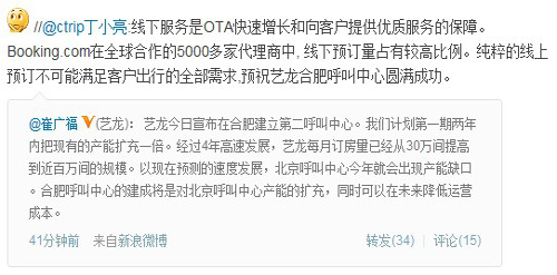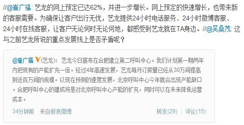 崔廣福:藝龍再建呼叫中心是為滿足客服需求