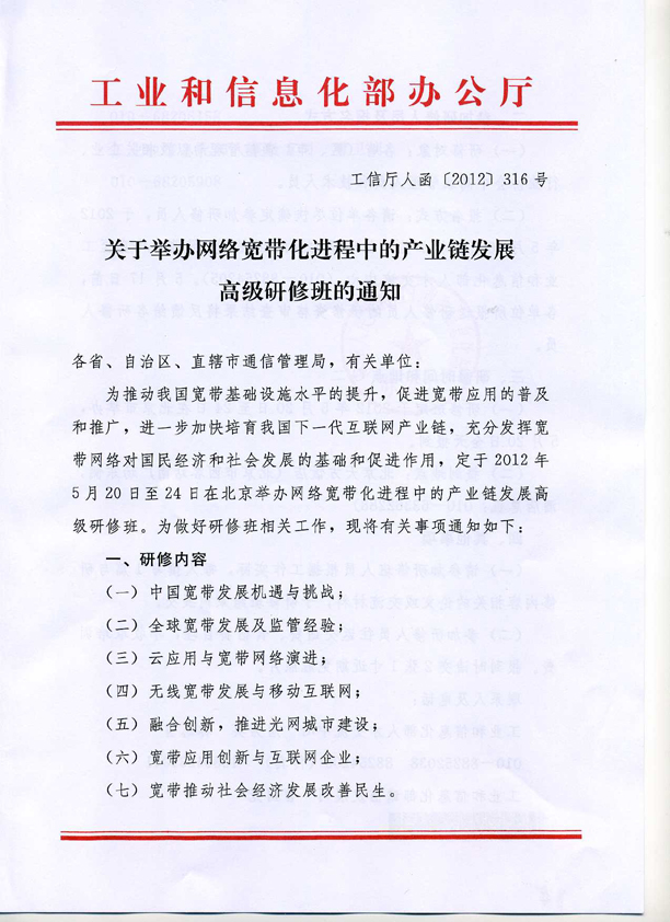 工信部:網(wǎng)絡(luò)寬帶化進(jìn)程中的產(chǎn)業(yè)鏈發(fā)展高級研修班