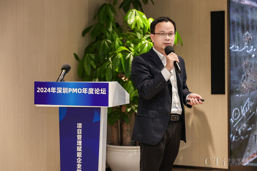 深圳市軟件行業(yè)協(xié)會執(zhí)行會長鄧愛國發(fā)表了熱情洋溢的致辭。他強調(diào)了PMO在數(shù)字化轉(zhuǎn)型中的關(guān)鍵作用,并表達了對與會者們的熱烈歡迎和對論壇的殷切期望。他表示,PMO是項目管理中的重要角色,承擔著承上啟下的作用,對于企業(yè)數(shù)字化轉(zhuǎn)型的成功至關(guān)重要。
