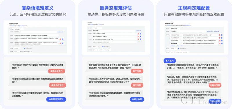 解決了傳統(tǒng)基于關鍵詞或NLP配置規(guī)則難以窮舉所有違規(guī)內容,導致檢測遺漏的難題,智能質檢的配置過程也更為簡便,只需簡單的描述輸入即可完成配置,大大降低了操作難度和成本。相較于人工質檢,效率提升幅度超過1000倍。