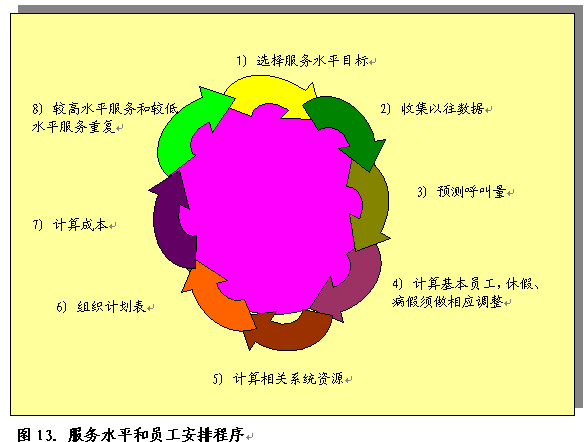制訂員工工作時(shí)間表是一個(gè)重要的管理任務(wù),每天通過三次替換有效配置員工,從而提供一年365天,24小時(shí)x7天的服務(wù)?衫肁CD報(bào)告進(jìn)行這一工作,確定以往呼叫量、放棄率和高峰期,預(yù)計(jì)下個(gè)小時(shí)、下一天、下個(gè)月或下一年的呼叫量。管理層按照規(guī)定程序確定員工需求量。根據(jù)以往呼叫量確定員工需求量。