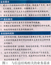 為了獲得真正智能化的企業(yè)客戶管理,信息結(jié)構(gòu)必須與商業(yè)智能無縫集成。圖1描述了與信息結(jié)構(gòu)相關(guān)的業(yè)務(wù)需求。這種需求和結(jié)構(gòu)引起的信息技術(shù)問題使得實現(xiàn)真正的集成化迫在眉睫。
