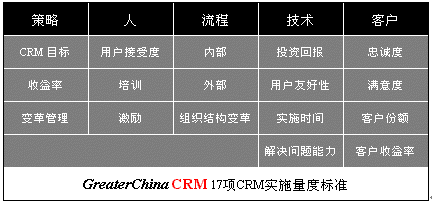 在評選的最后階段,GreaterChinaCRM的中國顧問將從小名單的51家企業(yè)中,根據(jù)CRM實(shí)施案例報(bào)告和量度標(biāo)準(zhǔn)評選出了最后的17家最佳。其中GreaterChinaCRM的全球顧問會對量度標(biāo)準(zhǔn)的每一項(xiàng)都進(jìn)行了權(quán)重評定。