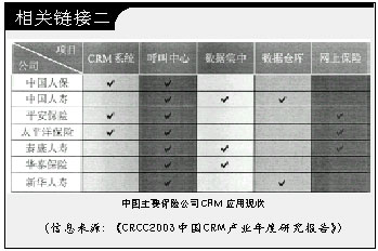 據(jù)某IT媒體2002年末的調(diào)研,只有不到1/5的中國(guó)保險(xiǎn)公司擁有客戶關(guān)系管理系統(tǒng),但是近六成的保險(xiǎn)公司計(jì)劃在近期內(nèi)實(shí)施CRM;另一份調(diào)查則顯示中國(guó)保險(xiǎn)業(yè)過(guò)去3年的IT投入平均達(dá)到9.36億元,幾乎所有的保險(xiǎn)公司都在從不同側(cè)面開(kāi)展CRM建設(shè)。CRM在中國(guó)保險(xiǎn)業(yè)的應(yīng)用,到底是處于落伍還是冒進(jìn)狀態(tài),成為一個(gè)意味深長(zhǎng)的話題。