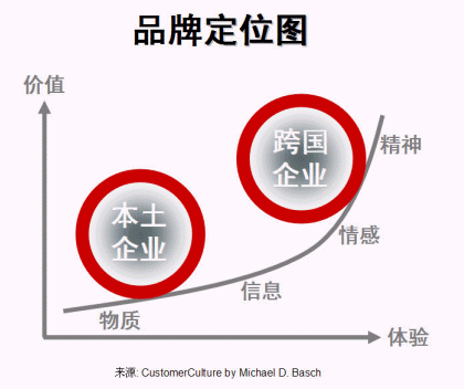 客戶體驗是客戶關(guān)系管理的重要組成部分。根據(jù)過去數(shù)年評選中國最佳CRM實施企業(yè)所作的分析,本土與外資企業(yè)在企業(yè)體檢中各項主要評分中有較大差距,其中之一是客戶體驗(-7.1分,見圖一、本土與跨國企業(yè)之差距)。本土企業(yè)若只提供低層次的客戶體驗,只為客戶帶來低價值,也只能打價格戰(zhàn)、做代工,很難做大做強打通全球市場。做好品牌,其實再深入一點說就是要做好客戶體驗,價值(價格)才會上去(見圖二、品牌定位)。