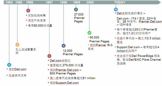 Dell從2004年開始,在中國大陸推出改服務,開始的服務對象都是一些跨國公司在國內(nèi)的分支機構(gòu),到現(xiàn)在為止,已經(jīng)有1000個用戶,通過Premier下單的金額,也從開始的每月不足10萬美元,到現(xiàn)在的每月超過400萬美元。