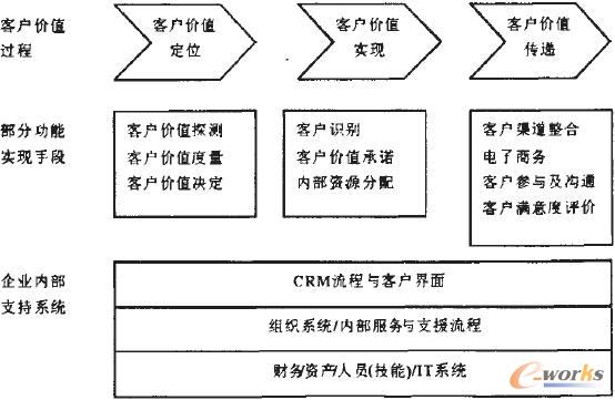 。1)基于客戶價(jià)值過(guò)程而非基于客戶生命周期來(lái)劃分不同的階段,分為客戶價(jià)值定位、客戶價(jià)值實(shí)現(xiàn)和客戶價(jià)值傳遞三個(gè)階段。