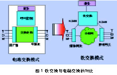 軟交換模式與傳統(tǒng)電路交換模式在結(jié)構(gòu)方面的對(duì)比,如圖1所示。