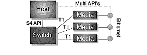 使用TAPI、S.100和H.100規(guī)格,服務點的主機、交換和媒體資源能有效的集成到一個交換平臺中(見圖三)早期的集成結構受非冗余備份交換的限制,不能滿足服務供應商的需求。S.100和TAPI也不能滿足諸如處理器冗余備份和資源分布的要求,應用于PC平臺的H.100標準也不支持“無信號點的故障“(no signal point of failure)的載體需求。而Sigma計劃的支持全標準兼容性克服了這些限制。