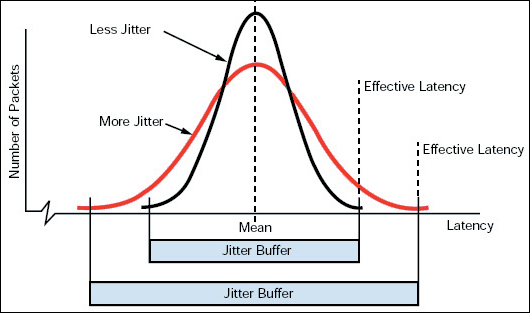 網(wǎng)絡(luò)上的抖動出現(xiàn)50到200毫秒的標準偏差并非罕見。相比之下,企業(yè)LAN卻很少出現(xiàn)超過幾毫秒的抖動。