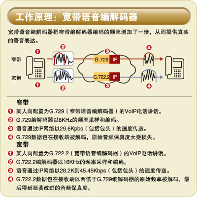 典型的人類語音盡管由范圍很寬的頻率組成,但利用10KHz以上的頻率采樣就能很好地復(fù)制。不幸的是,大多數(shù)VoIP的編解碼器也只能捕獲這個(gè)頻譜范圍的一半。G.729語音編解碼器是VoIP系統(tǒng)中應(yīng)用最廣的編解碼器,它是采樣頻率范圍從200Hz至略小于4KHz的窄頻編解碼器。因此,典型人類語音的大部分頻譜沒有被采集到。