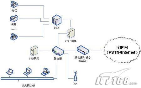 圖6 未來Internet和PSTN融合企業(yè)網(wǎng)絡體系