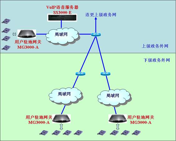 在電子政務(wù)網(wǎng)建設(shè)完成后,政府各級(jí)部門(mén)可以在其上建設(shè)自己的VoIP系統(tǒng),以實(shí)現(xiàn)轄區(qū)范圍內(nèi)“虛擬電話專(zhuān)網(wǎng)”的效果。在這個(gè)電話專(zhuān)網(wǎng)內(nèi),所有內(nèi)部電話都有自己設(shè)置的小號(hào),他們之間通話都將免費(fèi),而不管這些電話間物理距離是多少。