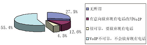 最近《華爾街日報》刊載了YankeeGroup公司的調(diào)查報告,對美國人使用VoIP的趨向和目前的一些應(yīng)用狀況進(jìn)行了統(tǒng)計,重點(diǎn)調(diào)查了美國人是否要放棄傳統(tǒng)的固定電話而改用VoIP,具體數(shù)據(jù)參見圖1。從圖中可見人們對放棄固定電話而改用VoIP的意向還不是很高,但已使用VoIP的人群卻是個龐大的群體,使用VoIP的人口比例已達(dá)15.1%,現(xiàn)使用人數(shù)已達(dá)到了4500多萬戶,具體見表1。另外,目前美國VoIP已從暴利行業(yè)轉(zhuǎn)向微利行業(yè),這點(diǎn)可以從Skype公司收入得到證明,詳見表2。