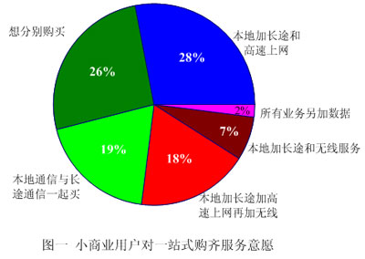 在小型企業(yè)通信技術(shù)發(fā)展過程中,展現(xiàn)出了小型企業(yè)對一站式購齊服務(wù)特別感興趣,這可從華爾街日報上刊載的文章中得到證明,近日華爾街日報上刊載了AMI-Partners調(diào)查公司對1005個小型企業(yè)對一站式購齊服務(wù)的調(diào)查結(jié)果,請見圖一。