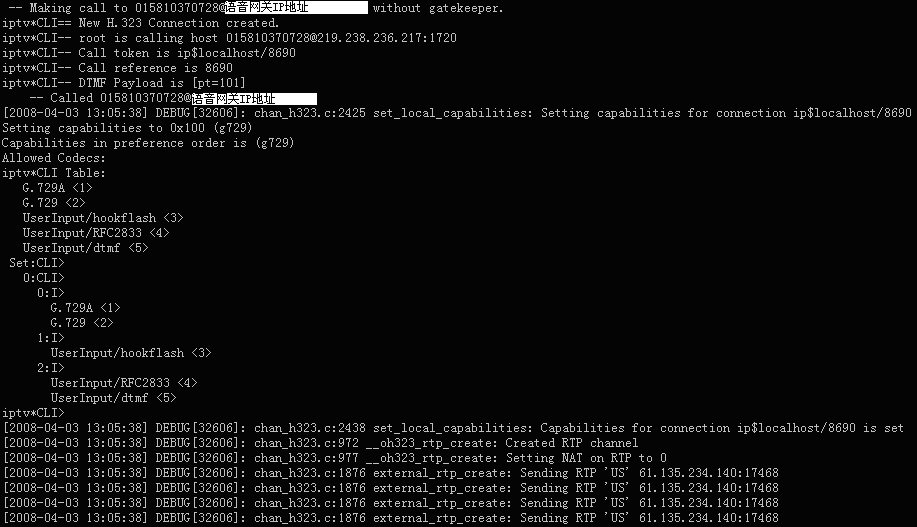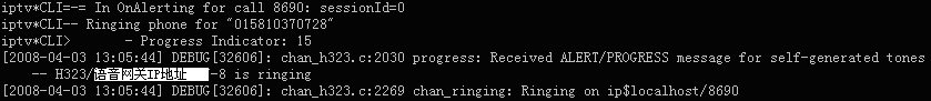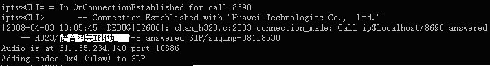 表示軟交換Asterisk與華為8010語音網關的H323連接已經成功建立