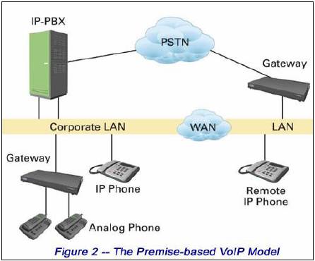 與托管VoIP模式相比,基于內建的模式在中小型企業(yè)設施中設有IP PBX (圖2)。在此架構下,供應商一般會提供捆綁業(yè)務,包括基于因特網接入的
