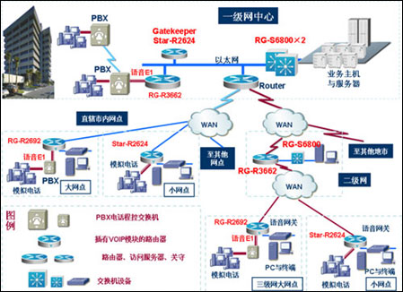 1、不改變?cè)芯W(wǎng)絡(luò)構(gòu)架,通過(guò)增加銳捷26系列路由器就可以直接把用戶(hù)PSTN系統(tǒng)接入IP網(wǎng)絡(luò),輕松實(shí)現(xiàn)VOIP應(yīng)用的擴(kuò)展接入。