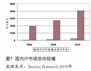 中國是全球最大的半導(dǎo)體市場之一,但是相對應(yīng)的中國集成電路IP(知識產(chǎn)權(quán))市場只有5610萬美元,僅為全球市場的2.8%,仍屬于起步階段。根據(jù)Semico Research的分析,到2010年中國IP市場將增長到2.47億美元,占全球市場的6%,年均增長率高達(dá)44.9%,遠(yuǎn)超過全球IP市場的18.3%的增長率(見圖1)。