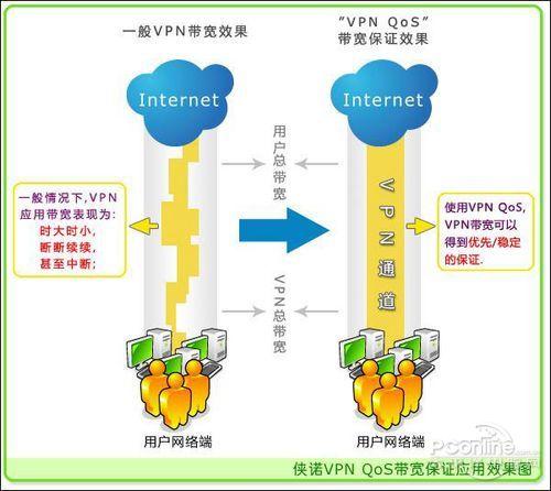 俠諾的VPN QoS,即能深入“大水管中的小水管”,將QoS帶寬管理的理念引入到VPN通道中,可謂是一個實(shí)用的技術(shù)創(chuàng)新,它可針對每一種VPN通道中的應(yīng)用設(shè)定最高可使用帶寬,這樣一來就可以防制某些VPN應(yīng)用大量占用單一VPN通道整體帶寬,全面保障每項(xiàng)VPN應(yīng)用可使用的帶寬,解決單一通道下,VPN應(yīng)用帶寬分配不均的問題。