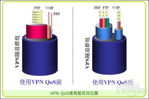一般情況下VPN線路帶寬所表現(xiàn)出來的時大時小、斷斷續(xù)續(xù)、甚至中斷等等不夠用或不穩(wěn)定的情況,在使用VPN QoS以后可得到根本的好轉(zhuǎn),它可以對VPN總體帶寬進(jìn)行大小分配,進(jìn)行優(yōu)先而穩(wěn)定的保證。有了足夠的VPN線路帶寬,才能快速的進(jìn)行VoIP、ERP等應(yīng)用。因此保證VPN整體帶寬是VPN應(yīng)用的基礎(chǔ)。