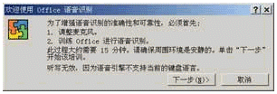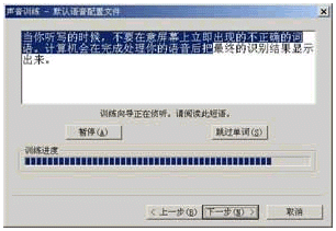 一般情況下,我們最好在語音識別功能安裝結(jié)束后立即按照系統(tǒng)提示單擊"下一步"對語音識別功能進行訓練,整個訓練過程包括調(diào)整麥克風和訓練Office進行語音識別兩部分(如圖3所示)。