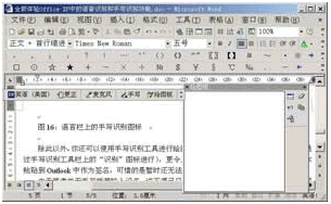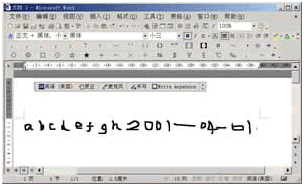 安裝成功后,你會從圖16中看到一個手寫圖標,接下來我們就可以使用手寫識別功能啦。首先,你必須在屏幕上選定書寫區(qū)域,可以是屏幕上類似于筆記本橫格紙的輸入板,也可以在屏幕上任意的位置書寫。我們可通過使用手寫輸入設備或移動鼠標墊上的鼠標來形成文字,從而完成書寫,手寫文字將被自動識別,并輸入到程序的插入點處。就像通常在紙張表面上一樣,你可以使用草書、印刷體或二者兼而有之地進行書寫,書寫時不必每寫完一個字母后作停頓,可輸入整個單詞并在單詞之間留出空格。