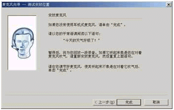 (2)現(xiàn)在你看到的是"安放麥克風"對話框(如圖5所示),如果你沒有使用頭戴式麥克風,那么就可以點擊"完成"按鈕。