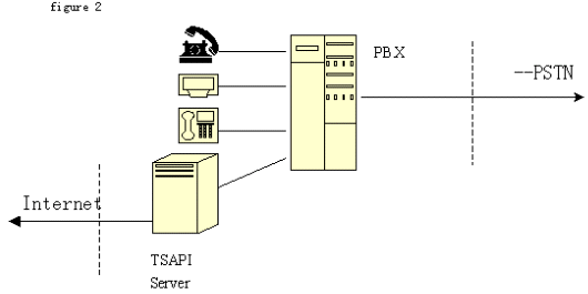 2、TSAPI技術(shù)標(biāo)準(zhǔn):由Novell公司開發(fā)。它將程控交換機(jī)或中央電話系統(tǒng)與Netware網(wǎng)絡(luò)集成在一起?梢詫(shí)現(xiàn)呼叫轉(zhuǎn)移,交互式語音(IVR)和自動(dòng)呼叫分配(ACD)等功能。支持包括Windows各種版本、OS/2和Unix等目前主要操作系統(tǒng)。不同于TAPI ,TSAPI在計(jì)算機(jī)和桌面之間建立一個(gè)邏輯的連接,通過這些連接在任一端的TSAPI應(yīng)用就可以完成呼叫控制。由于TSAPI主要為Netware網(wǎng)操作系統(tǒng)增加電話服務(wù),不在每個(gè)電話和PC之間建立直接的連接,而是由一個(gè)電話服務(wù)器Netware可加載模塊(NLM)、一個(gè)電話服務(wù)器API(TSAPI)、一個(gè)電話服務(wù)器庫和一個(gè)電話客戶庫組組成在服務(wù)器電話系統(tǒng)間建立的連接,因此這個(gè)連接也稱為PBX-To-Server連接。電話服務(wù)器 NLM是負(fù)責(zé) PBX和 Netware服務(wù)器間傳送信息的。電話服務(wù)器 API是為運(yùn)行于服務(wù)器上的應(yīng)用提供電話服務(wù)器API。三方連接在客戶--服務(wù)器組網(wǎng)中比單方連接有更大的靈活性。網(wǎng)上的每個(gè)用戶都可迅速地通過現(xiàn)有的LAN基礎(chǔ)結(jié)構(gòu)撥入PBX。對其他服務(wù)的接入,如主機(jī)或終端仿真、傳真、E-mail等,都可以通過CTI接口獲得,只要這些業(yè)務(wù)已經(jīng)存在于網(wǎng)上。結(jié)構(gòu)如圖: