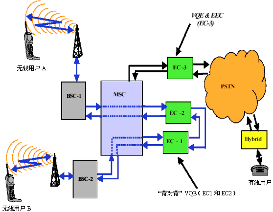 使消費(fèi)者滿意并不斷擴(kuò)大用戶(hù)基數(shù),抱著這一目的,很多無(wú)線服務(wù)提供商求助于補(bǔ)救措施,對(duì)2G的缺點(diǎn)進(jìn)行補(bǔ)償。與此同時(shí),數(shù)字無(wú)線語(yǔ)音與PSTN(公共交換電話網(wǎng))的連接要求用到電回聲抑制器(EEC),基于這一事實(shí),人們將VQE