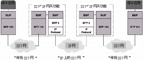 就是兩個(gè)PSTN網(wǎng)絡(luò)之間通過(guò)IP網(wǎng)絡(luò)連接起來(lái),PSTN網(wǎng)絡(luò)間的SS7信令信息通過(guò)IP網(wǎng)透明地傳送到對(duì)方。這樣做的目的是:不管呼叫是通過(guò)基于電路的PSTN還是通過(guò)VoIP網(wǎng)絡(luò),都能向用戶提供相同的隨時(shí)隨地的接入和業(yè)務(wù)功能集。另外,通過(guò)IP網(wǎng)傳遞SS7所需要的基礎(chǔ)傳輸設(shè)備成本明顯要比傳送傳統(tǒng)SS7所需要的基礎(chǔ)傳輸設(shè)備低得多。(參考圖9)