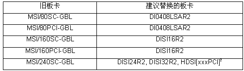 下面的表列出了本文檔中討論過(guò)的停產(chǎn)了的板卡和建議作為替換的板卡