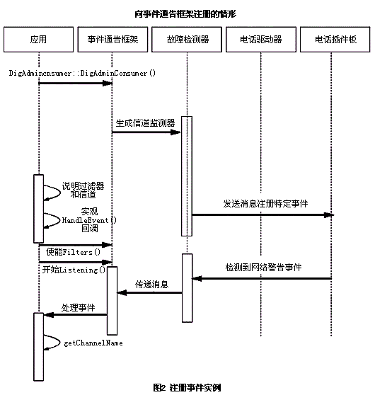 。。圖2顯示了用來完成外圍板卡告警和故障通告注冊的部件之間的交互過程。下面是關(guān)于應(yīng)用程序的概述: